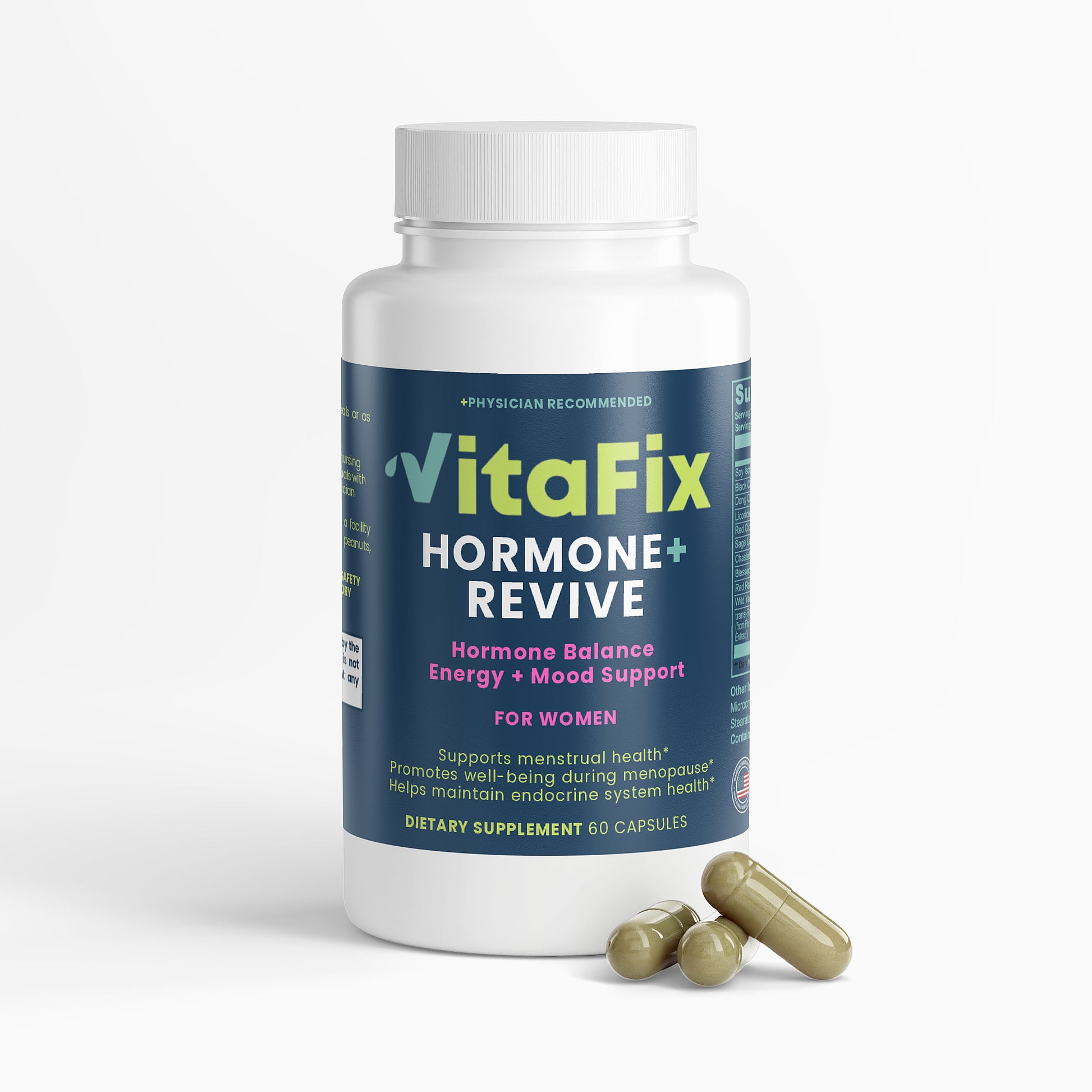 Hormone+Revive by VitaFix is your daily dose of hormonal harmony. Formulated with a powerful blend of time-tested botanicals, this women’s vitality supplement is designed to support hormonal balance, reproductive health, and overall well-being—through all phases of life.