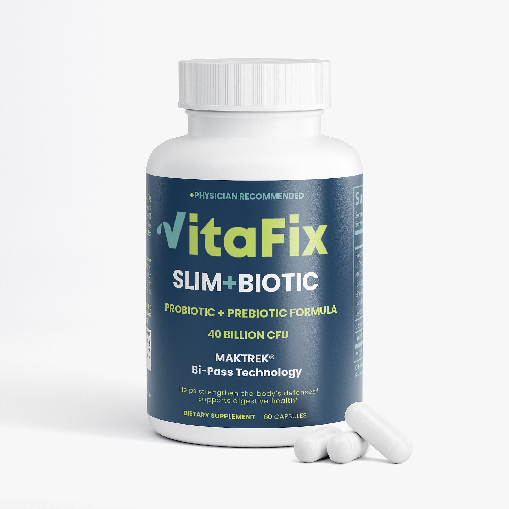 Slim-Biotic delivers a powerful 40 billion CFU blend of four clinically studied probiotic strains—including Lactobacillus Acidophilus, Bifidobacterium Lactis, Lactobacillus Plantarum, and Lactobacillus Paracasei—designed to support gut health, digestive function, and a balanced microbiome.
