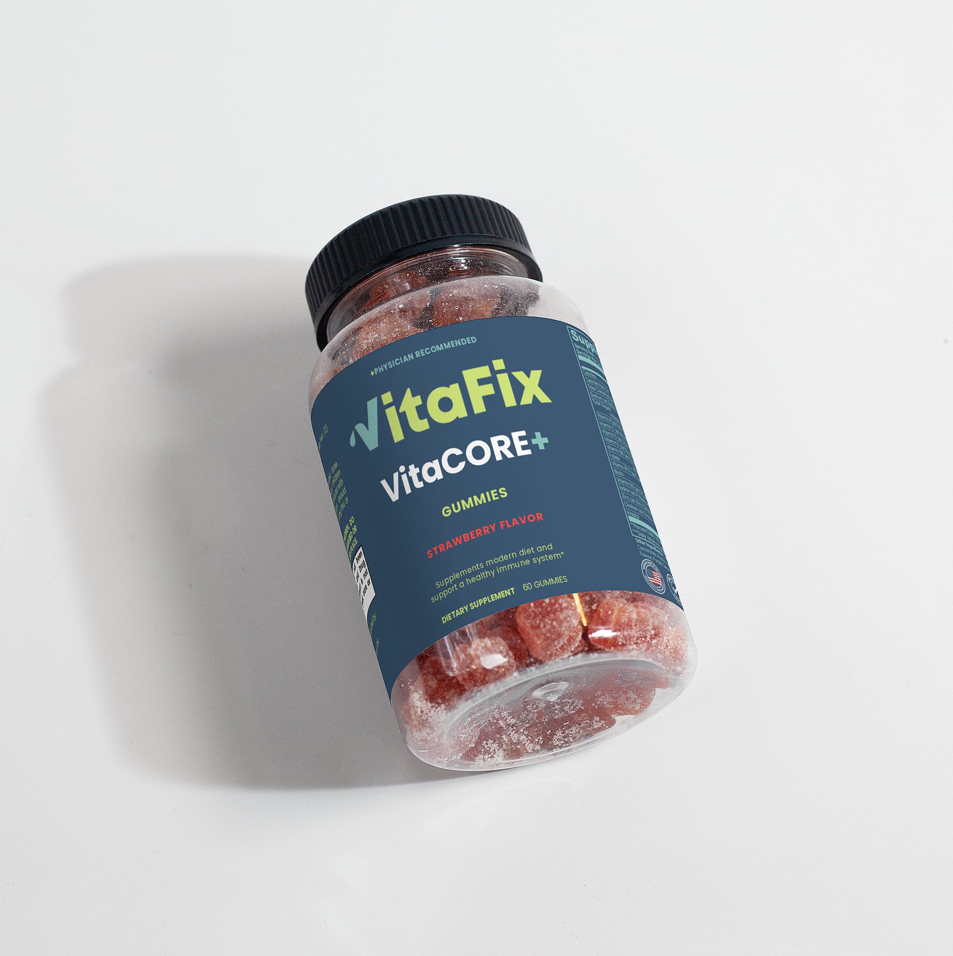 VitaCORE+ is your daily essential multivitamin in a convenient, great-tasting strawberry gummy. Packed with a physician-formulated blend of vital nutrients—including Vitamin A, C, D, B-complex, Zinc, Choline, and more—these gummies support overall wellness, immune function, brain health, cardiovascular support, and even a sense of calm.